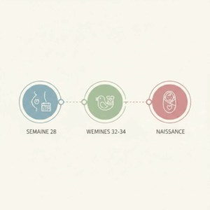 L’idéal est de commencer à rassembler vos affaires entre la 32ème et la 34ème semaine de grossesse. Pourquoi cette période précise ? Parce qu’elle vous laisse suffisamment de temps pour acheter ce qui manque sans précipitation, tout en restant assez proche du terme pour que votre valise ne traîne pas des semaines dans l’entrée. Si vous attendez des jumeaux ou que votre grossesse présente des particularités, avancez ce calendrier à la 28ème semaine.